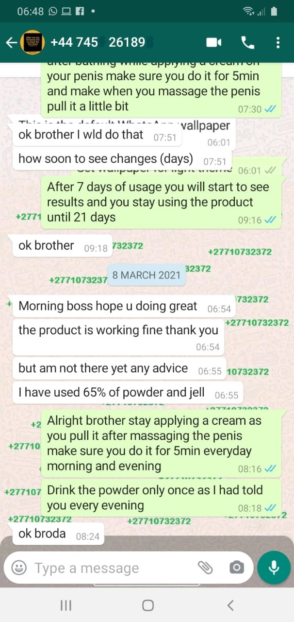 My name is Kinu Akim and I would like to let all know that the size of your Penis really matters in your relationship or marriage +27710732372, I got married to my wife about 2 month after we met in a photo studio, we lived happily for the first 3 months of our marriage until my wife and I started having quarrels at home because I couldn't satisfy her in bed with my little penis. Actually my penis was very small, it measured about 3.5 inch long and I am 39 years old. My wife said it was forbidden by the women of this world. My wife started sleeping with other me