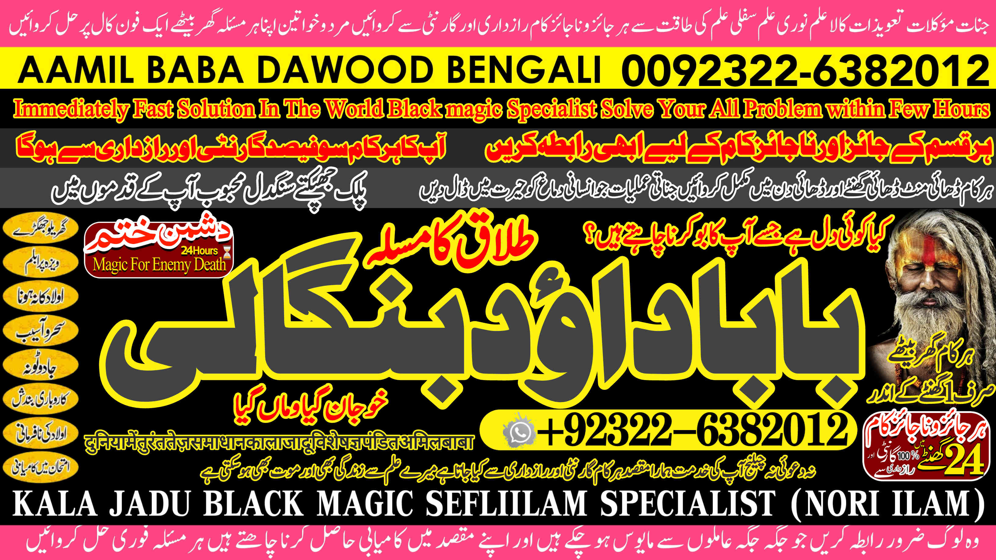 Amil Baba Dawood Bangali { PAK: 0322-6382012 ---- UAN: 0092-322-6382012} is a renowned spiritual healer and master of ancient occult sciences, specializing in Black Magic, Sephi Ilam, Nori Ilam, and Voodoo Spells. With decades of experience in the mystical arts, he has gained a reputation as a powerful and trusted guide for those seeking solutions to life's most challenging problems.