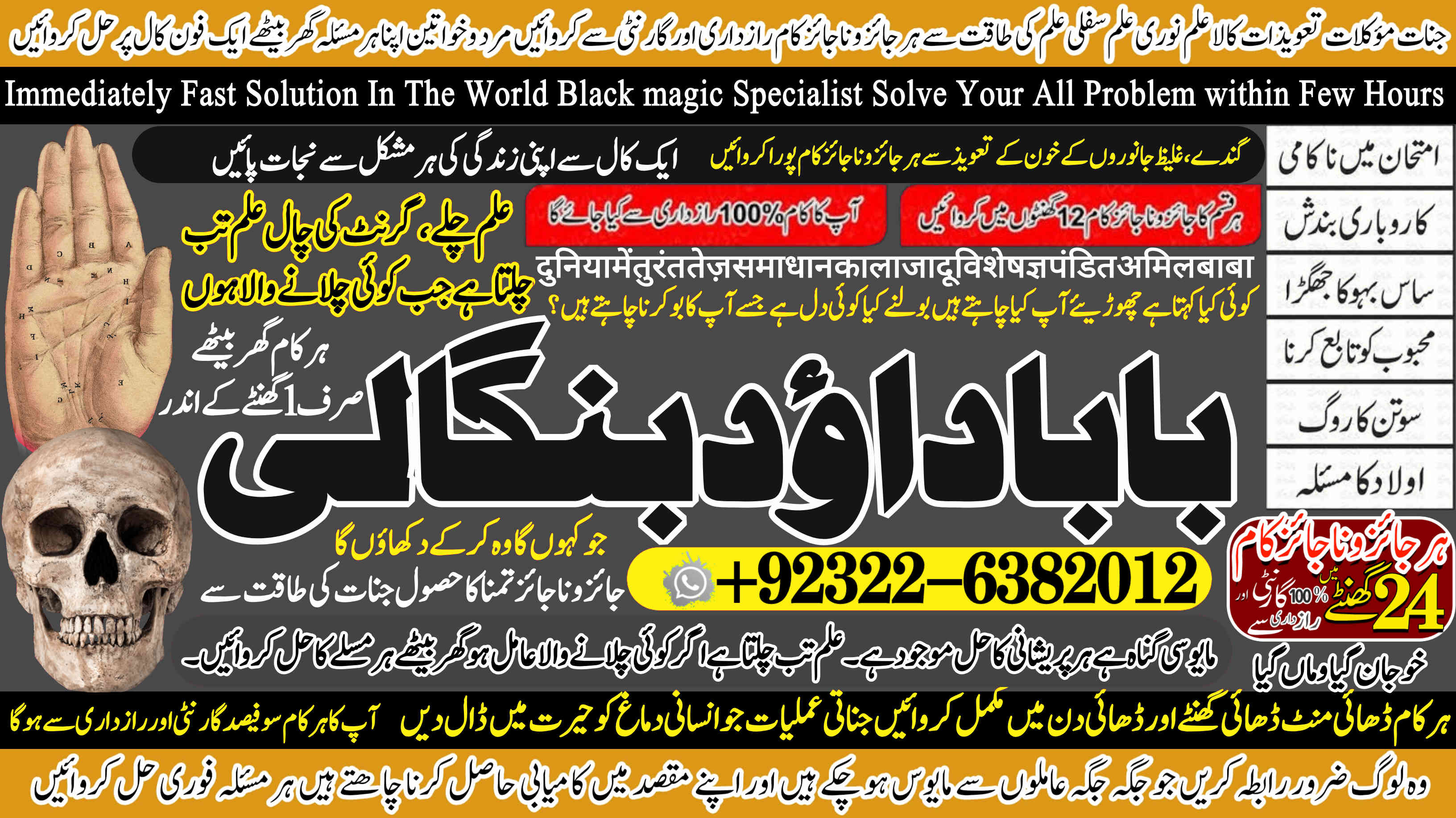 Amil Baba Dawood Bangali { PAK: 0322-6382012 ---- UAN: 0092-322-6382012} is a renowned spiritual healer and master of ancient occult sciences, specializing in Black Magic, Sephi Ilam, Nori Ilam, and Voodoo Spells. With decades of experience in the mystical arts, he has gained a reputation as a powerful and trusted guide for those seeking solutions to life's most challenging problems.