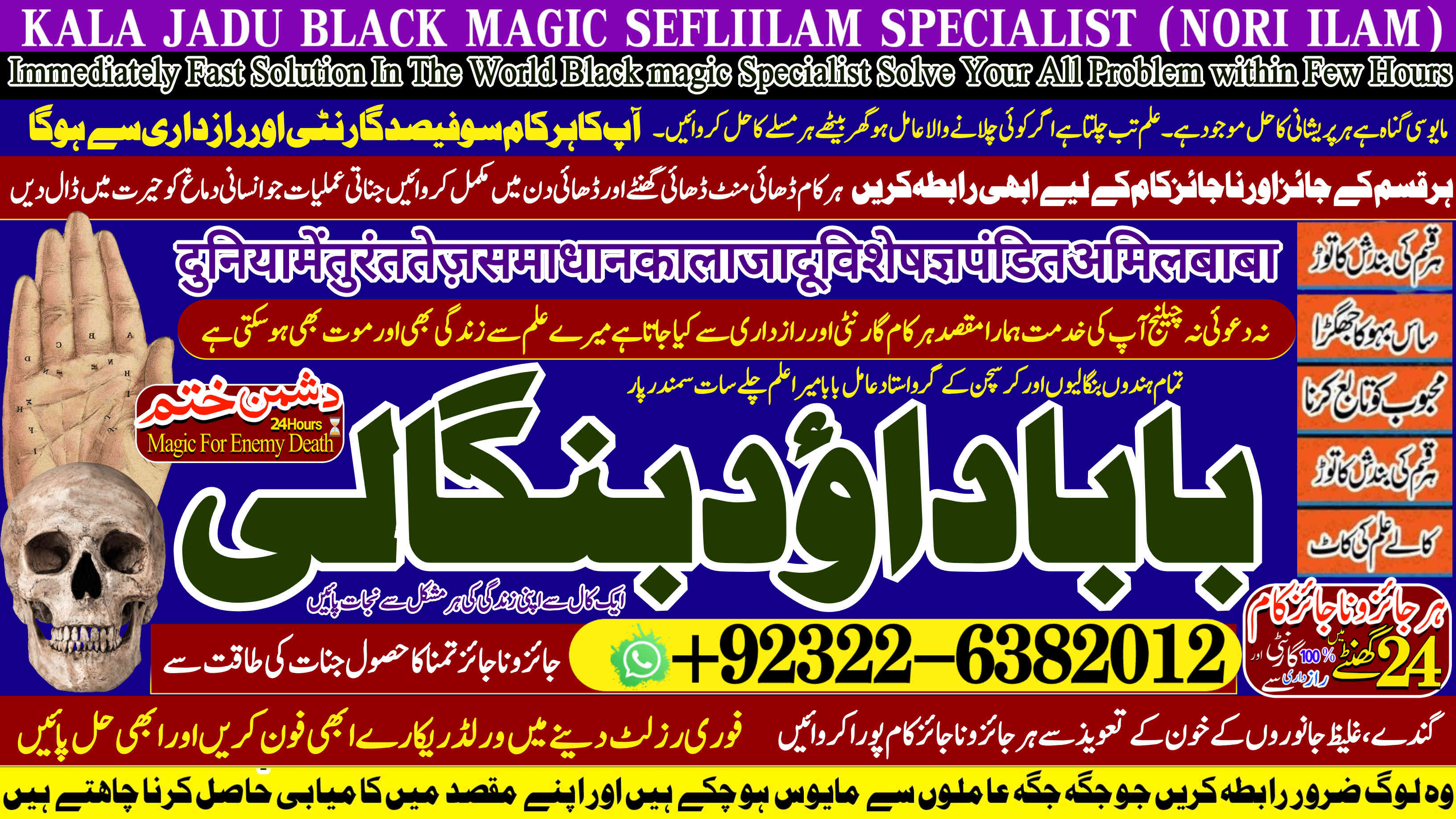 Amil Baba Dawood Bangali { PAK: 0322-6382012 ---- UAN: 0092-322-6382012} is a renowned spiritual healer and master of ancient occult sciences, specializing in Black Magic, Sephi Ilam, Nori Ilam, and Voodoo Spells. With decades of experience in the mystical arts, he has gained a reputation as a powerful and trusted guide for those seeking solutions to life's most challenging problems.