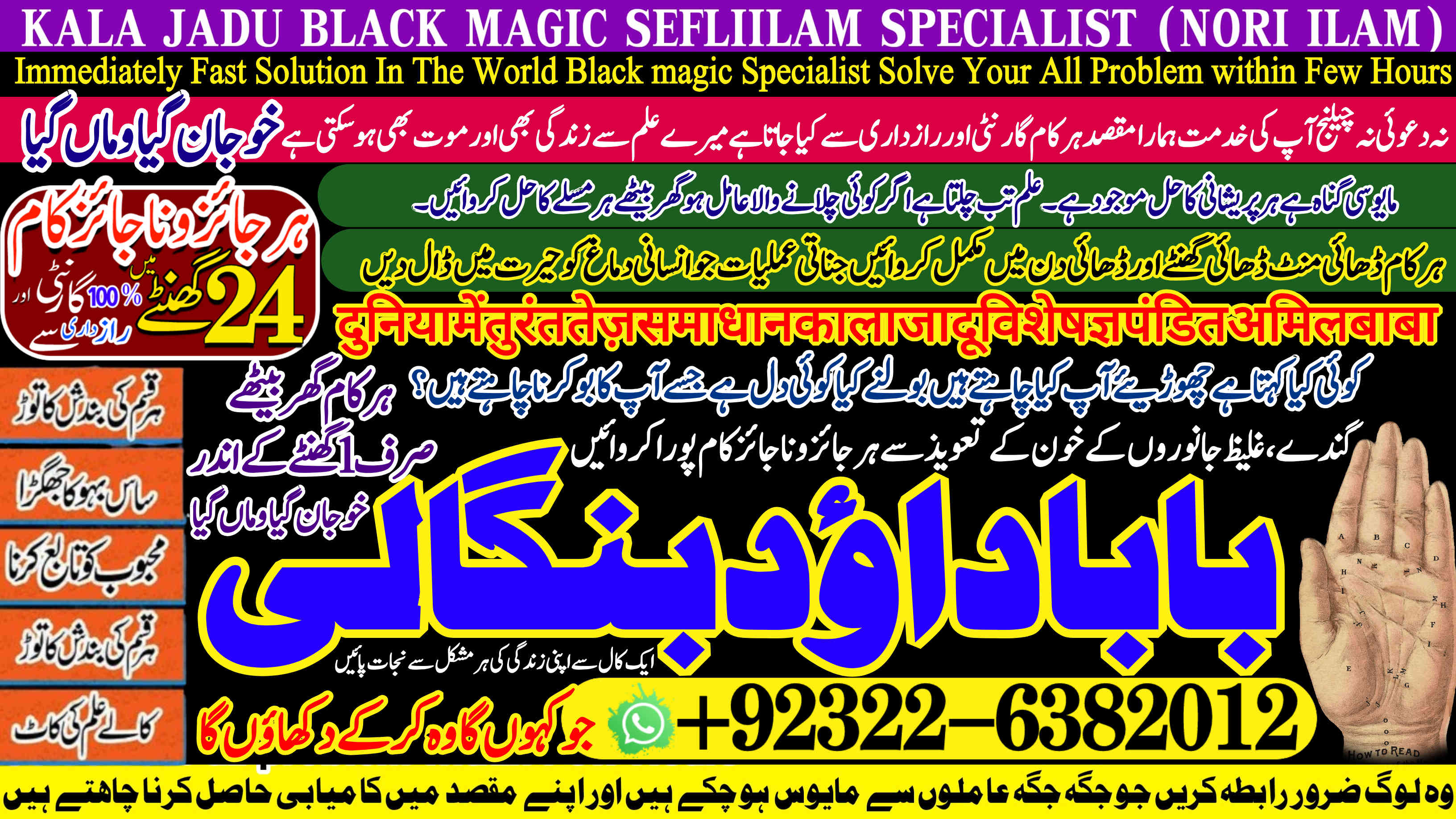 Amil Baba Dawood Bangali { PAK: 0322-6382012 ---- UAN: 0092-322-6382012} is a renowned spiritual healer and master of ancient occult sciences, specializing in Black Magic, Sephi Ilam, Nori Ilam, and Voodoo Spells. With decades of experience in the mystical arts, he has gained a reputation as a powerful and trusted guide for those seeking solutions to life's most challenging problems.