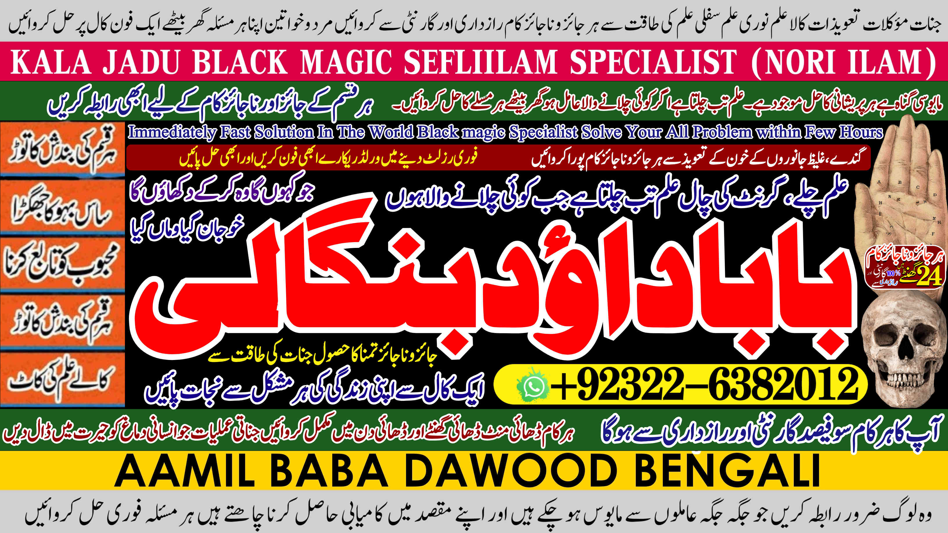 Amil Baba Dawood Bangali { PAK: 0322-6382012 ---- UAN: 0092-322-6382012} is a renowned spiritual healer and master of ancient occult sciences, specializing in Black Magic, Sephi Ilam, Nori Ilam, and Voodoo Spells. With decades of experience in the mystical arts, he has gained a reputation as a powerful and trusted guide for those seeking solutions to life's most challenging problems.