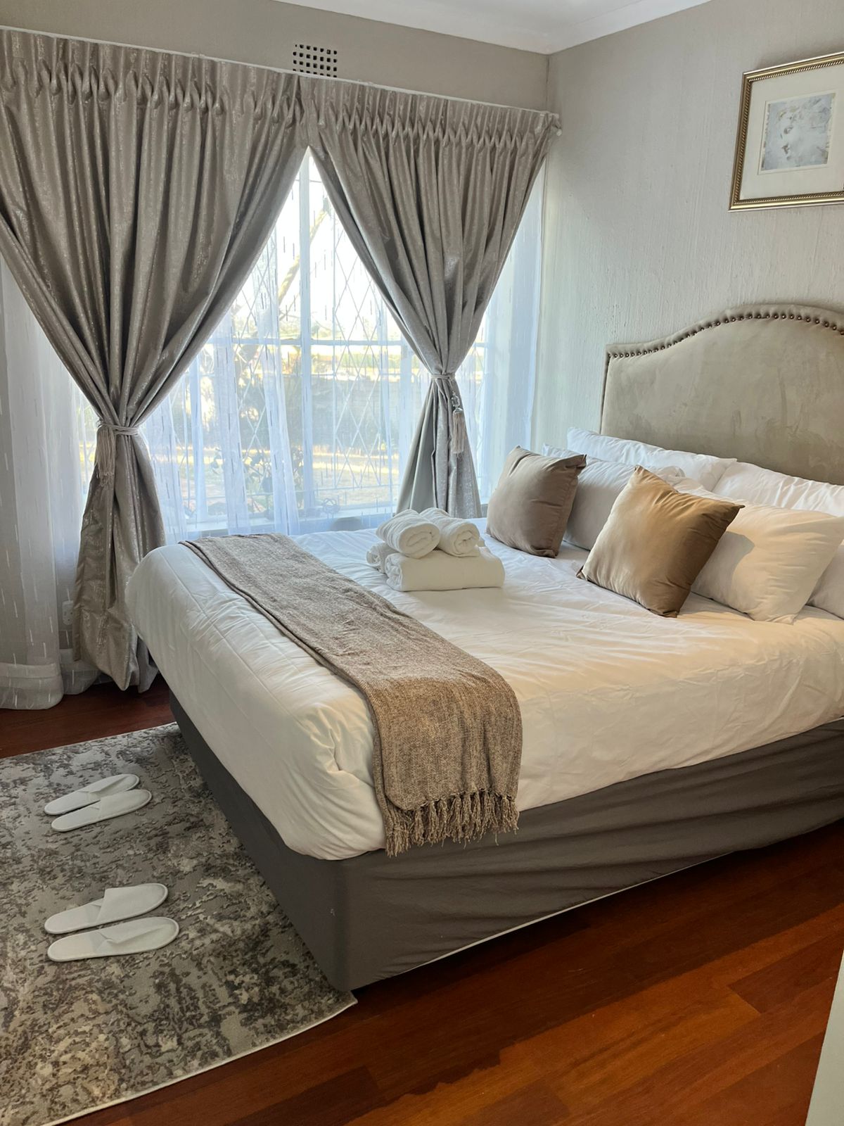 Providing quiet street views, Royal King Guest House Roodepoort in Roodepoort offers accommodations, a garden, barbecue facilities, and a shared lounge. This property offers access to a terrace and free private parking. Guests can make use of the outdoor fireplace or the picnic area, or enjoy views of the garden and city. At the guest house, all units come with a wardrobe, a flat-screen TV, a private bathroom, bed linen, and towels. The guest house provides certain units with inner courtyard views, and all units have a kettle. The rooms are equipped with heating facilities. Lanseria International Airport is 16 miles away.