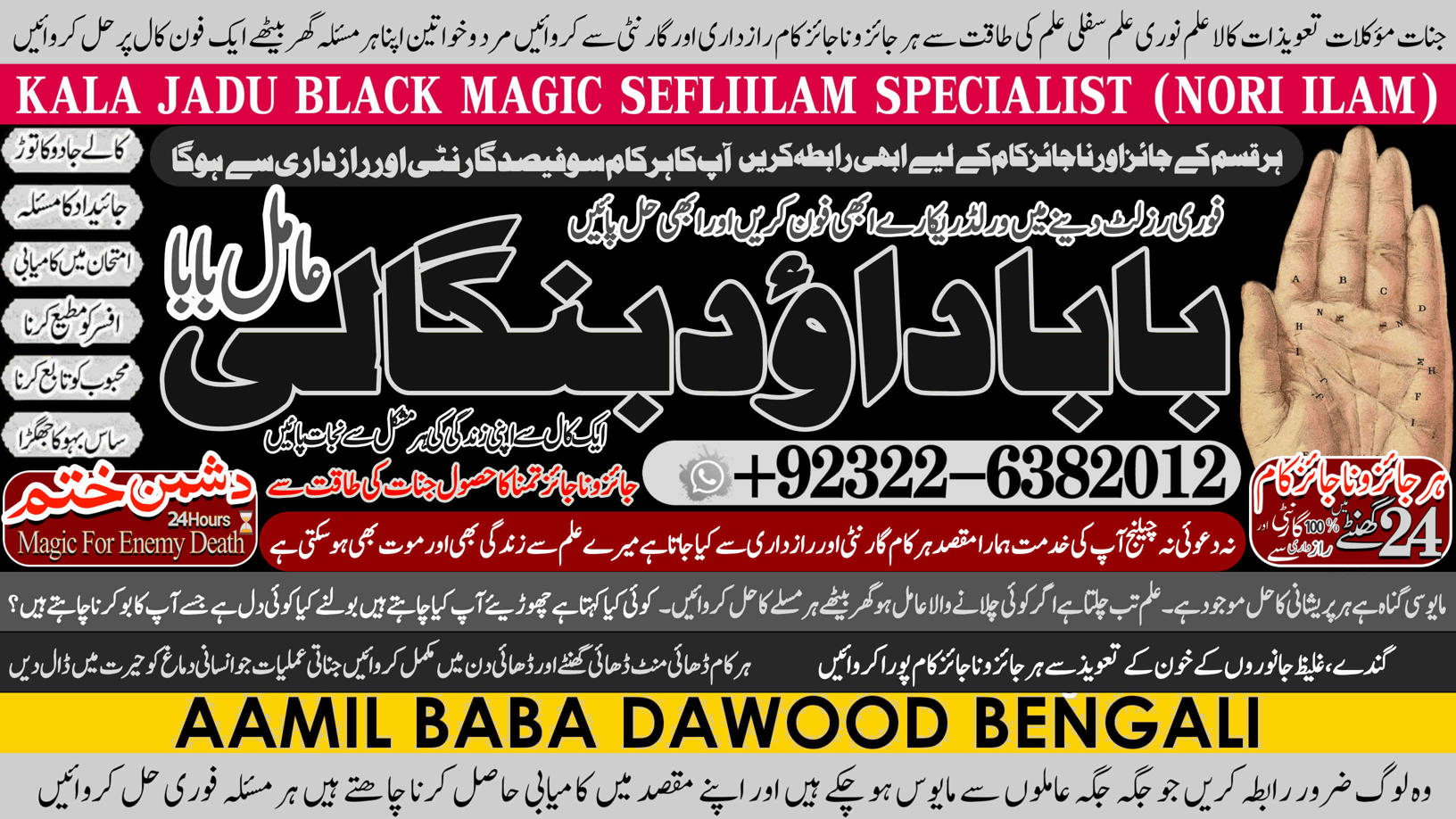 Amil Baba Dawood Bangali { PAK: 0322-6382012 ---- UAN: 0092-322-6382012} https://amilbabadawoodbengali.com/ is a renowned spiritual healer and master of ancient occult sciences, specializing in Black Magic, Sephi Ilam, Nori Ilam, and Voodoo Spells. With decades of experience in the mystical arts, he has gained a reputation as a powerful and trusted guide for those seeking solutions to life's most challenging problems.