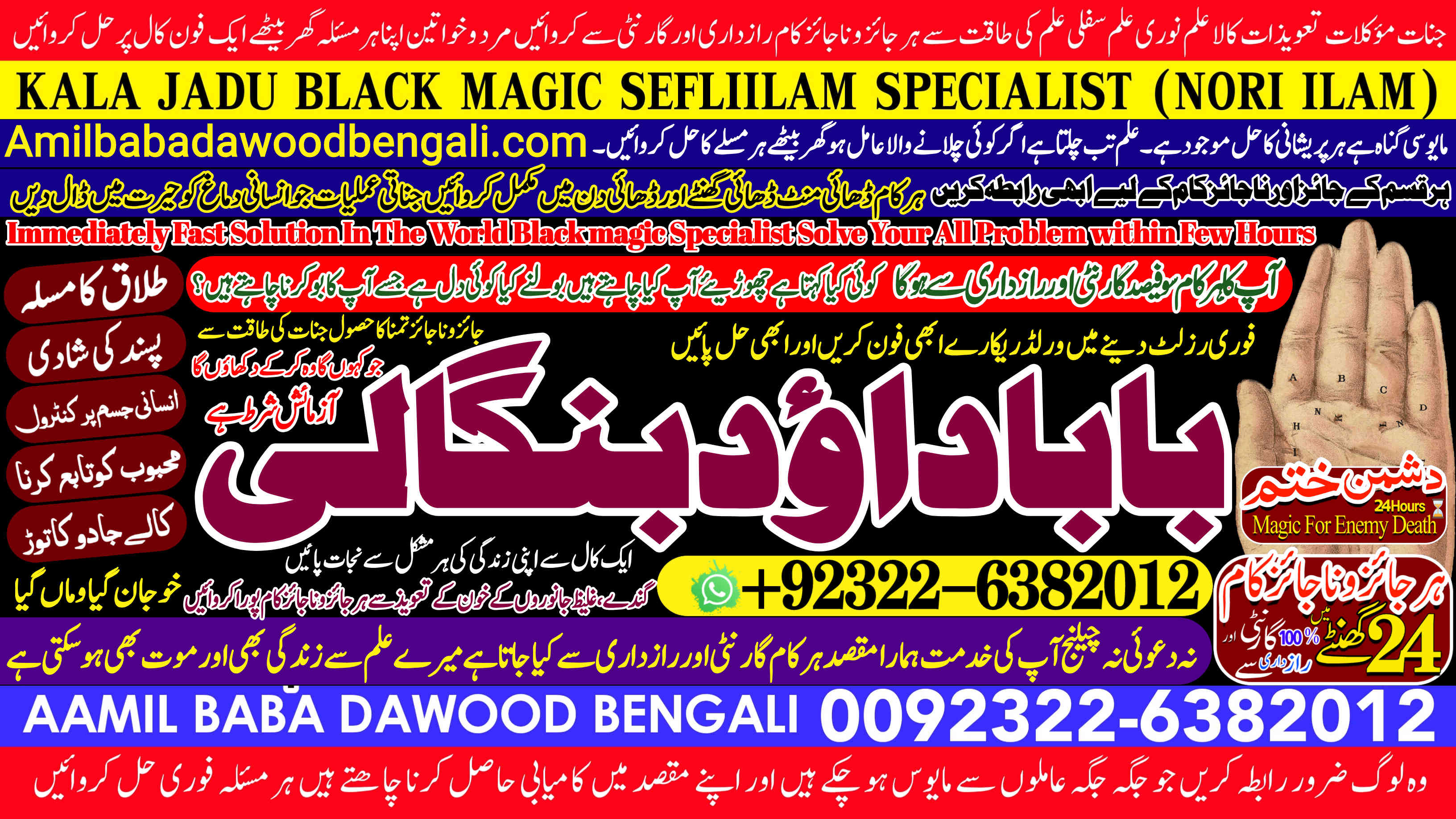 Amil Baba Dawood Bangali { PAK: 0322-6382012 ---- UAN: 0092-322-6382012} https://amilbabadawoodbengali.com/ is a renowned spiritual healer and master of ancient occult sciences, specializing in Black Magic, Sephi Ilam, Nori Ilam, and Voodoo Spells. With decades of experience in the mystical arts, he has gained a reputation as a powerful and trusted guide for those seeking solutions to life's most challenging problems.