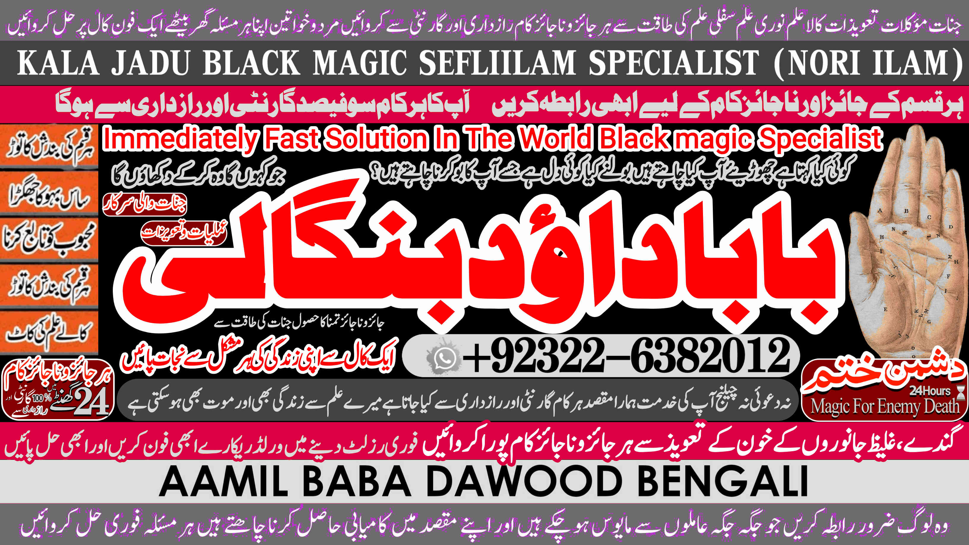 Amil Baba Dawood Bangali { PAK: 0322-6382012 ---- UAN: 0092-322-6382012} https://amilbabadawoodbengali.com/ is a renowned spiritual healer and master of ancient occult sciences, specializing in Black Magic, Sephi Ilam, Nori Ilam, and Voodoo Spells. With decades of experience in the mystical arts, he has gained a reputation as a powerful and trusted guide for those seeking solutions to life's most challenging problems.