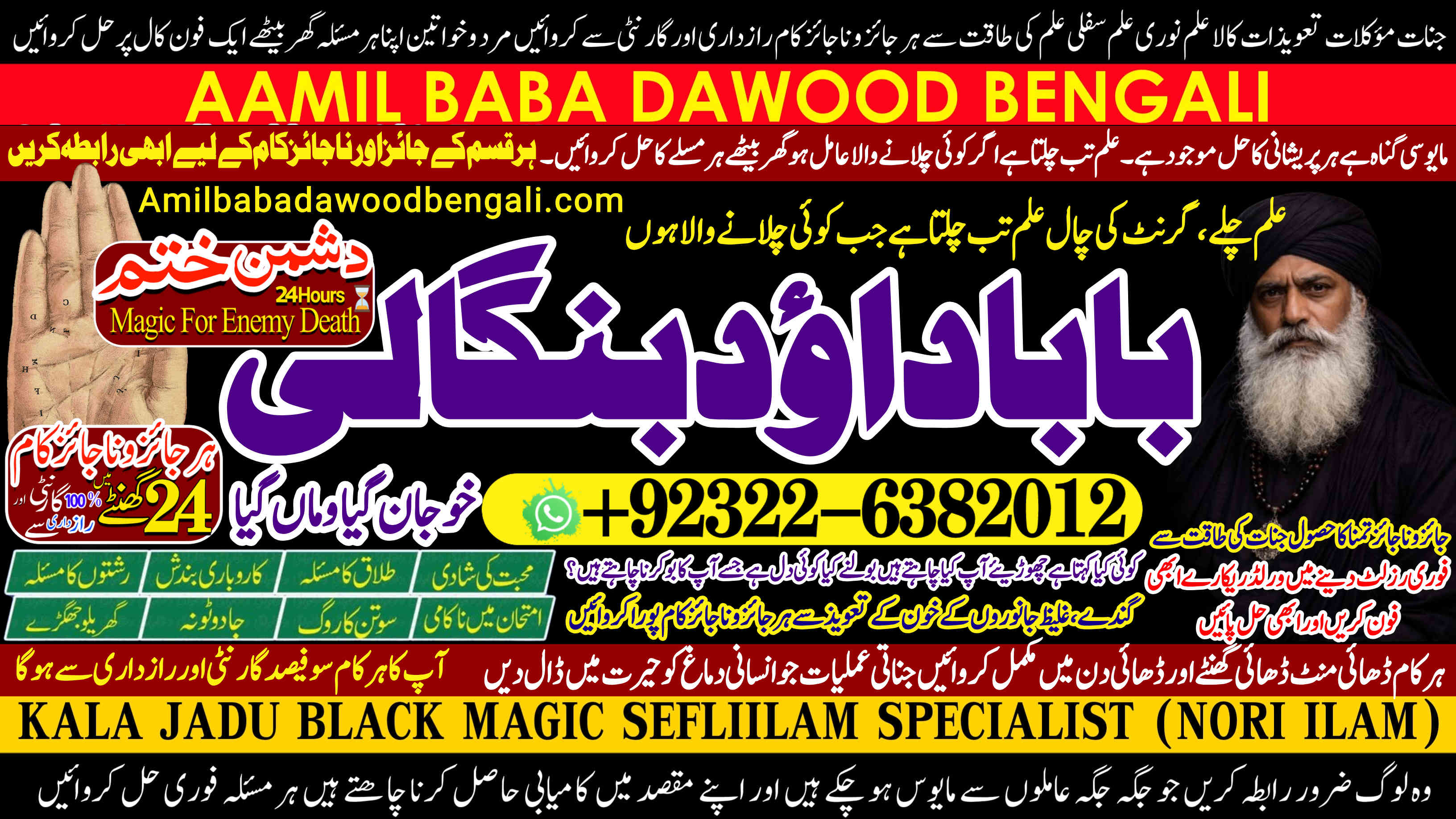 Amil Baba Dawood Bangali { PAK: 0322-6382012 ---- UAN: 0092-322-6382012} https://amilbabadawoodbengali.com/ is a renowned spiritual healer and master of ancient occult sciences, specializing in Black Magic, Sephi Ilam, Nori Ilam, and Voodoo Spells. With decades of experience in the mystical arts, he has gained a reputation as a powerful and trusted guide for those seeking solutions to life's most challenging problems.