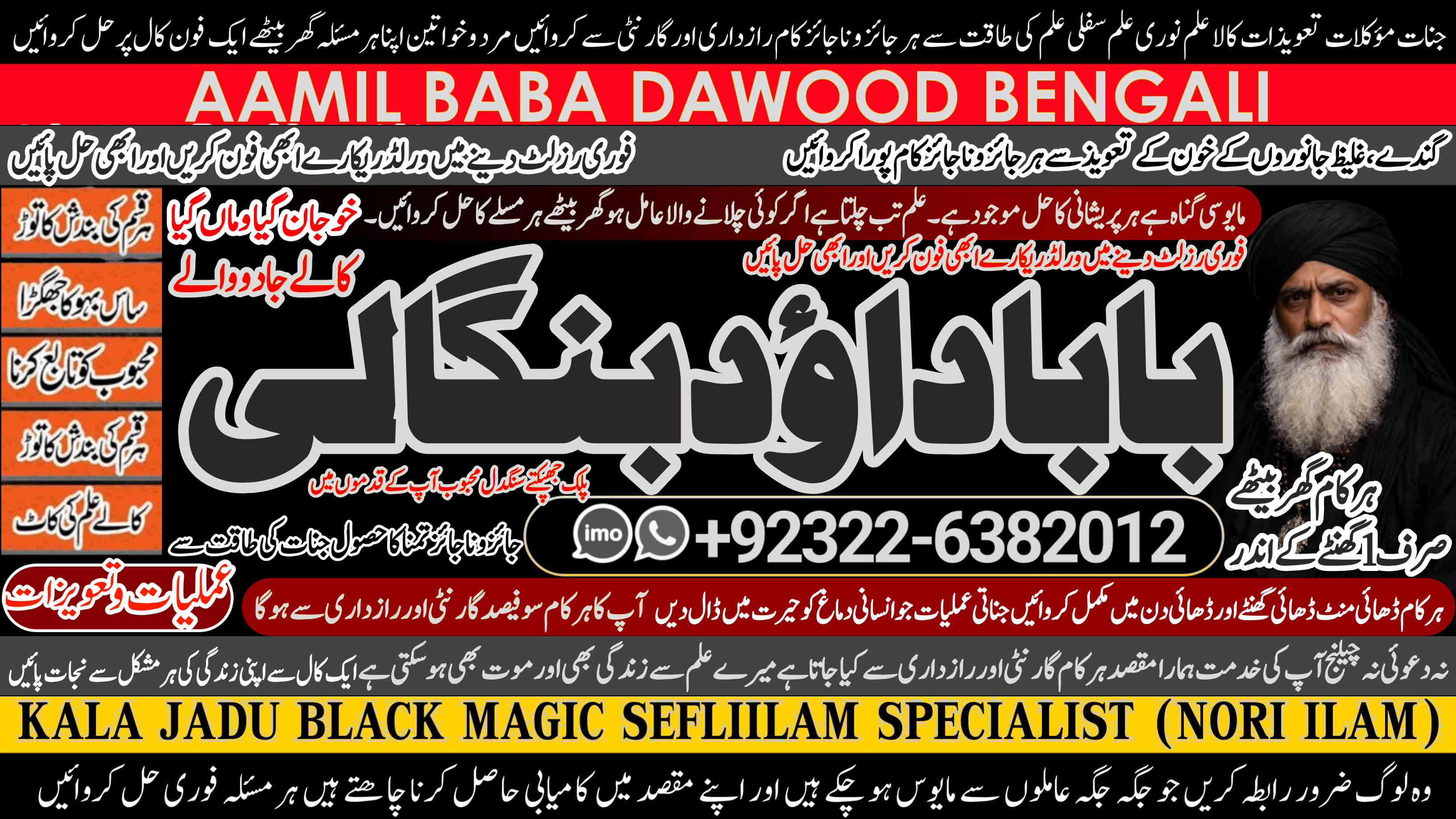 Amil Baba Dawood Bangali { PAK: 0322-6382012 ---- UAN: 0092-322-6382012} https://amilbabadawoodbengali.com/ is a renowned spiritual healer and master of ancient occult sciences, specializing in Black Magic, Sephi Ilam, Nori Ilam, and Voodoo Spells. With decades of experience in the mystical arts, he has gained a reputation as a powerful and trusted guide for those seeking solutions to life's most challenging problems.