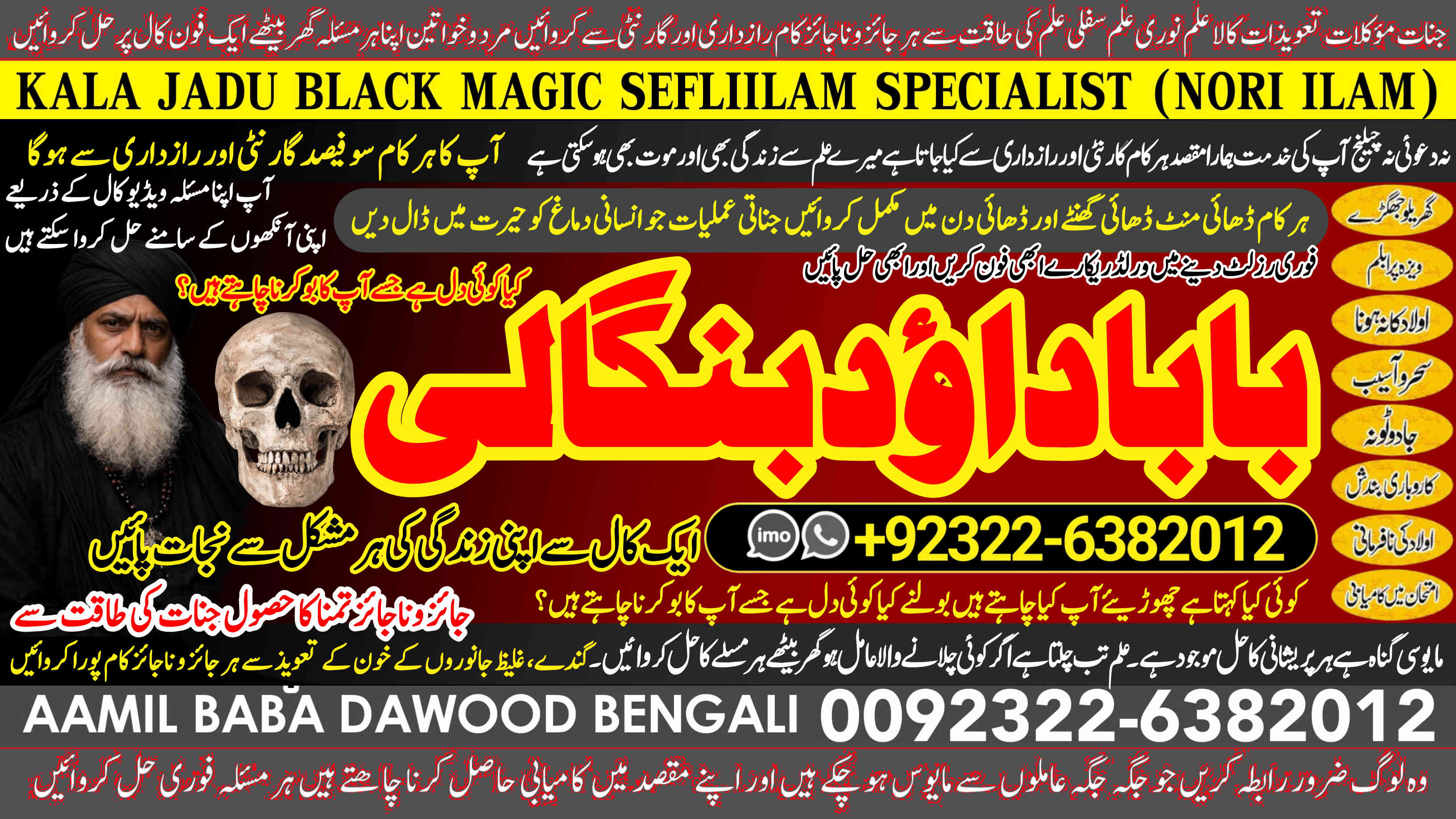 Amil Baba Dawood Bangali { PAK: 0322-6382012 ---- UAN: 0092-322-6382012} https://amilbabadawoodbengali.com/ is a renowned spiritual healer and master of ancient occult sciences, specializing in Black Magic, Sephi Ilam, Nori Ilam, and Voodoo Spells. With decades of experience in the mystical arts, he has gained a reputation as a powerful and trusted guide for those seeking solutions to life's most challenging problems.