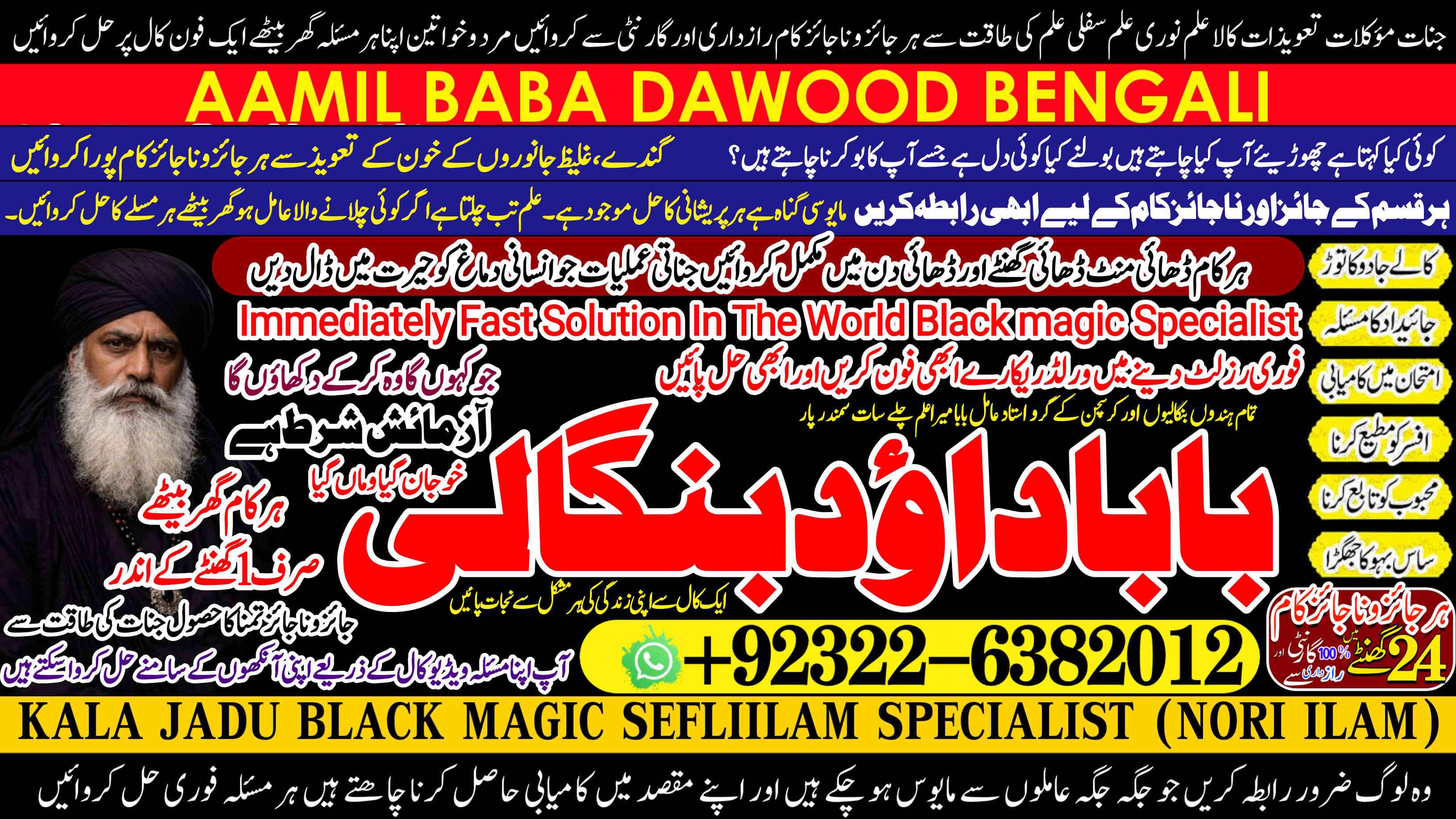 Amil Baba Dawood Bangali { PAK: 0322-6382012 ---- UAN: 0092-322-6382012} https://amilbabadawoodbengali.com/ is a renowned spiritual healer and master of ancient occult sciences, specializing in Black Magic, Sephi Ilam, Nori Ilam, and Voodoo Spells. With decades of experience in the mystical arts, he has gained a reputation as a powerful and trusted guide for those seeking solutions to life's most challenging problems.