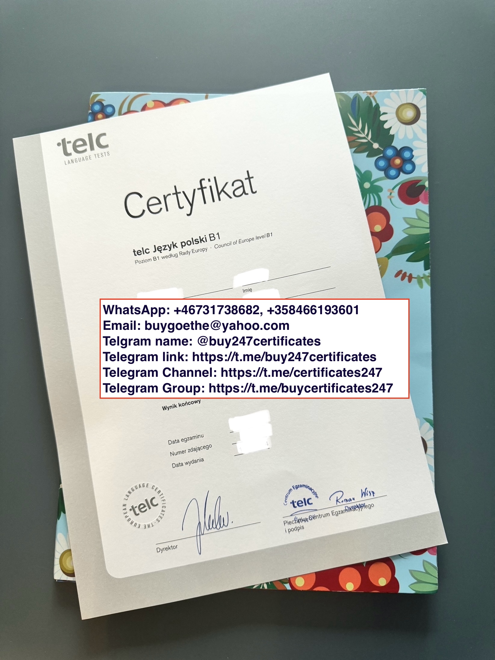 Telegram @buy247certificates. We are the best when it comes to providing genuine German language certificates online without the exam like Goethe, Telc, TestDAF, OSD, DSH, etc. All our German language certificates are 100% real and authentic which permit our clients to use them legally for immigration to Germany. In order to buy a German language certificate without exam online contact us.