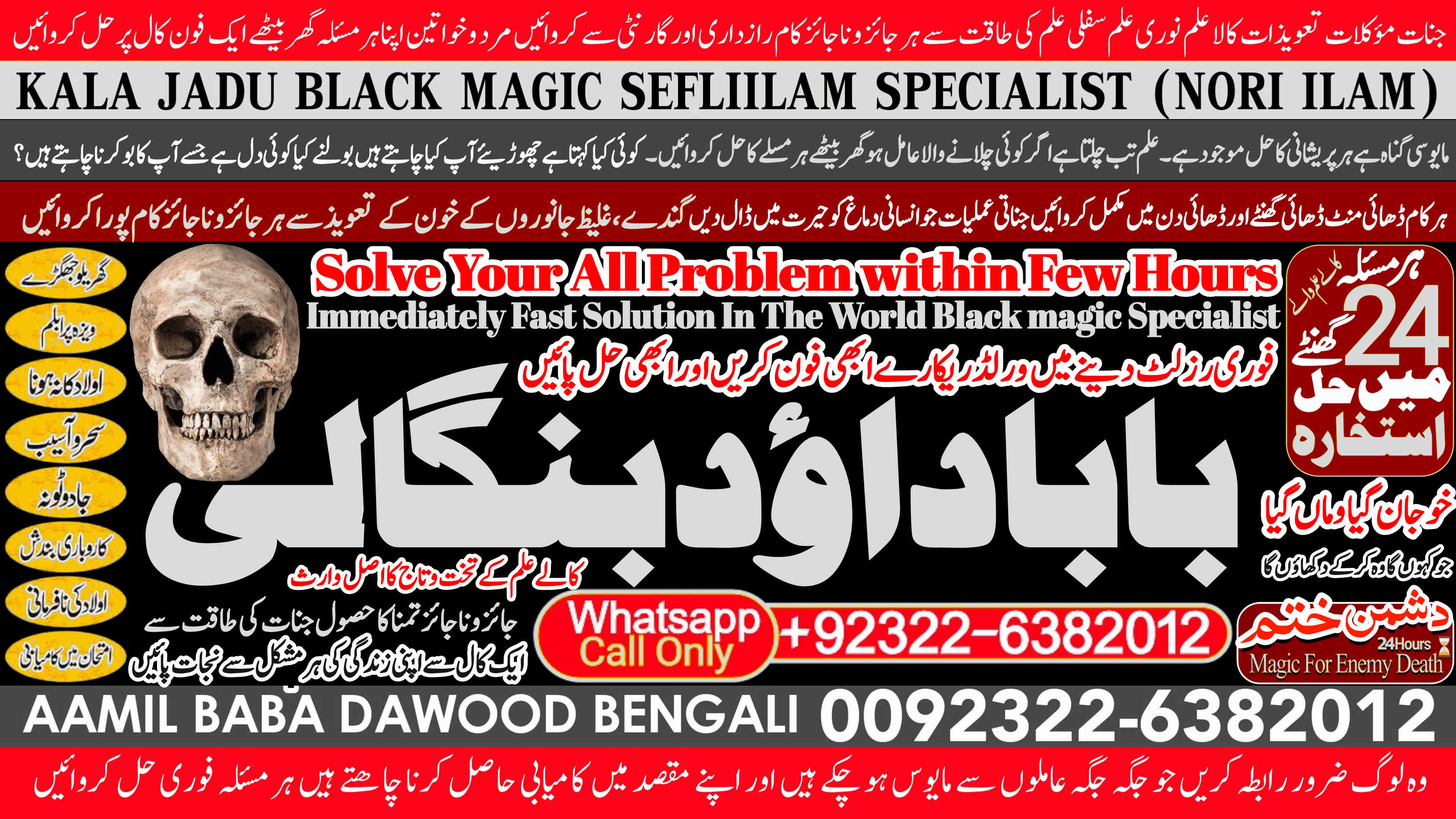 Whether it's love and relationship issues, business success, enemy protection, enemy dead or supernatural disturbances, Amil Baba Dawood Bangali provides authentic and effective remedies rooted in deep spiritual knowledge. His expertise in Kala Jadu (Black Magic), Sephi Ilam (sacred scriptures), Nori Ilam (divine light magic), and Voodoo rituals has helped countl