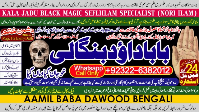 Amil Baba Dawood Bangali Contact on whatsapp +92322-6382012 is a renowned spiritual healer and master of ancient occult sciences, specializing in Black Magic, Sephi Ilam, Nori Ilam, and Voodoo Spells. With decades of experience in the mystical arts, he has gained a reputation as a powerful and trusted guide for those seeking solutions to life's most challenging problems.