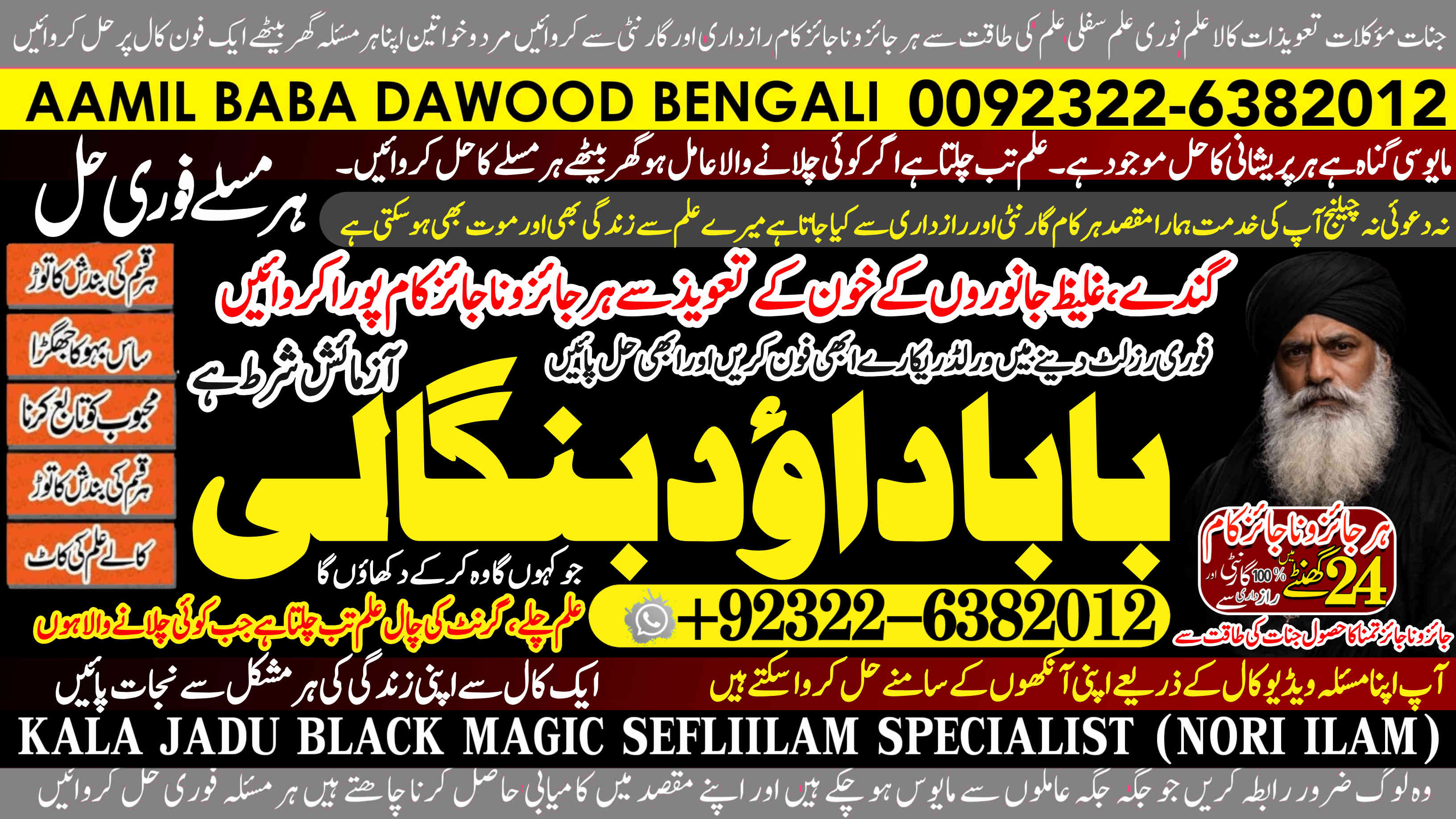 Amil Baba Dawood Bangali Contact on whatsapp +92322-6382012 is a renowned spiritual healer and master of ancient occult sciences, specializing in Black Magic, Sephi Ilam, Nori Ilam, and Voodoo Spells. With decades of experience in the mystical arts, he has gained a reputation as a powerful and trusted guide for those seeking solutions to life's most challenging problems.