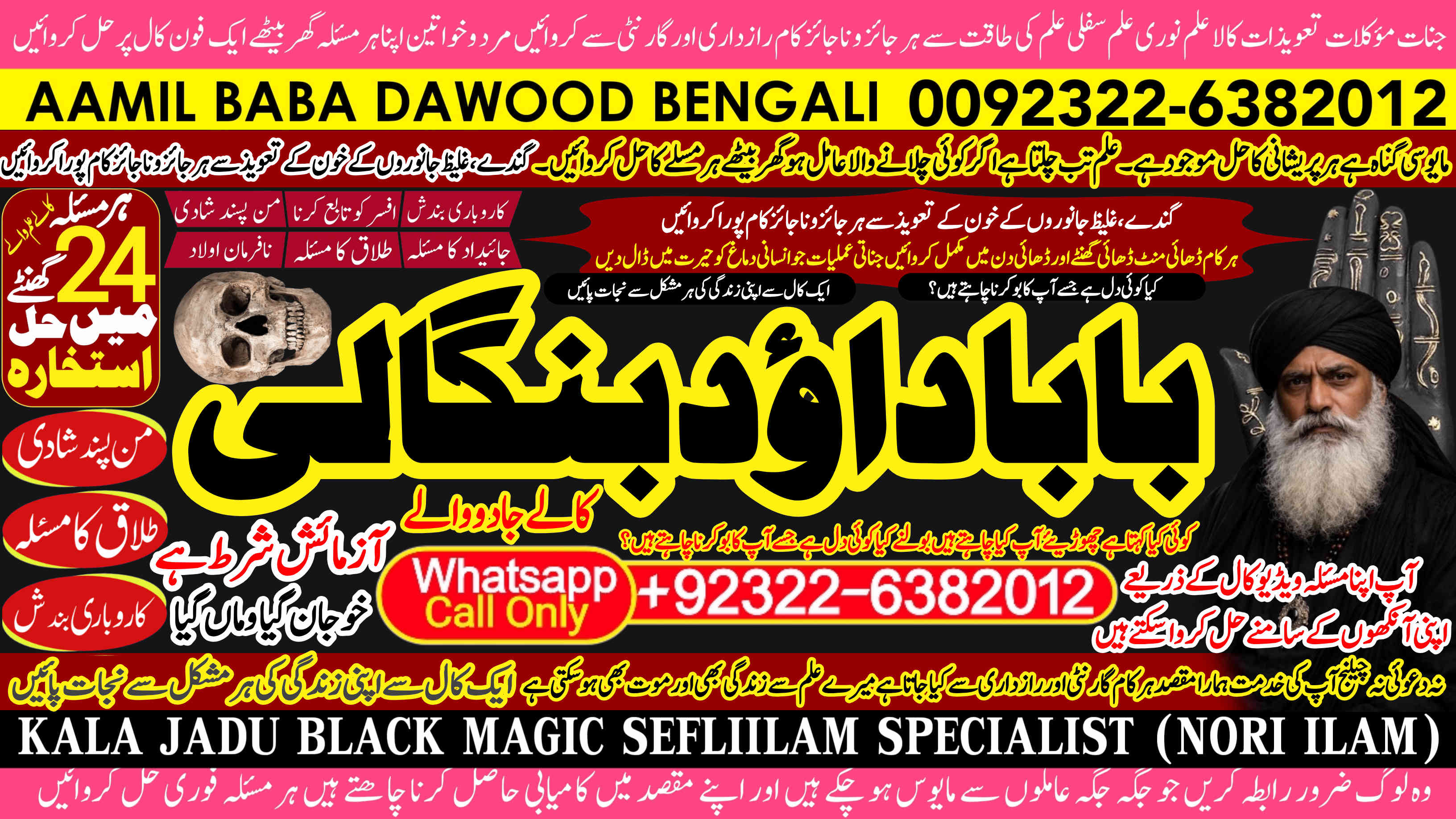 Amil Baba Dawood Bangali Contact on whatsapp +92322-6382012 is a renowned spiritual healer and master of ancient occult sciences, specializing in Black Magic, Sephi Ilam, Nori Ilam, and Voodoo Spells. With decades of experience in the mystical arts, he has gained a reputation as a powerful and trusted guide for those seeking solutions to life's most challenging problems.