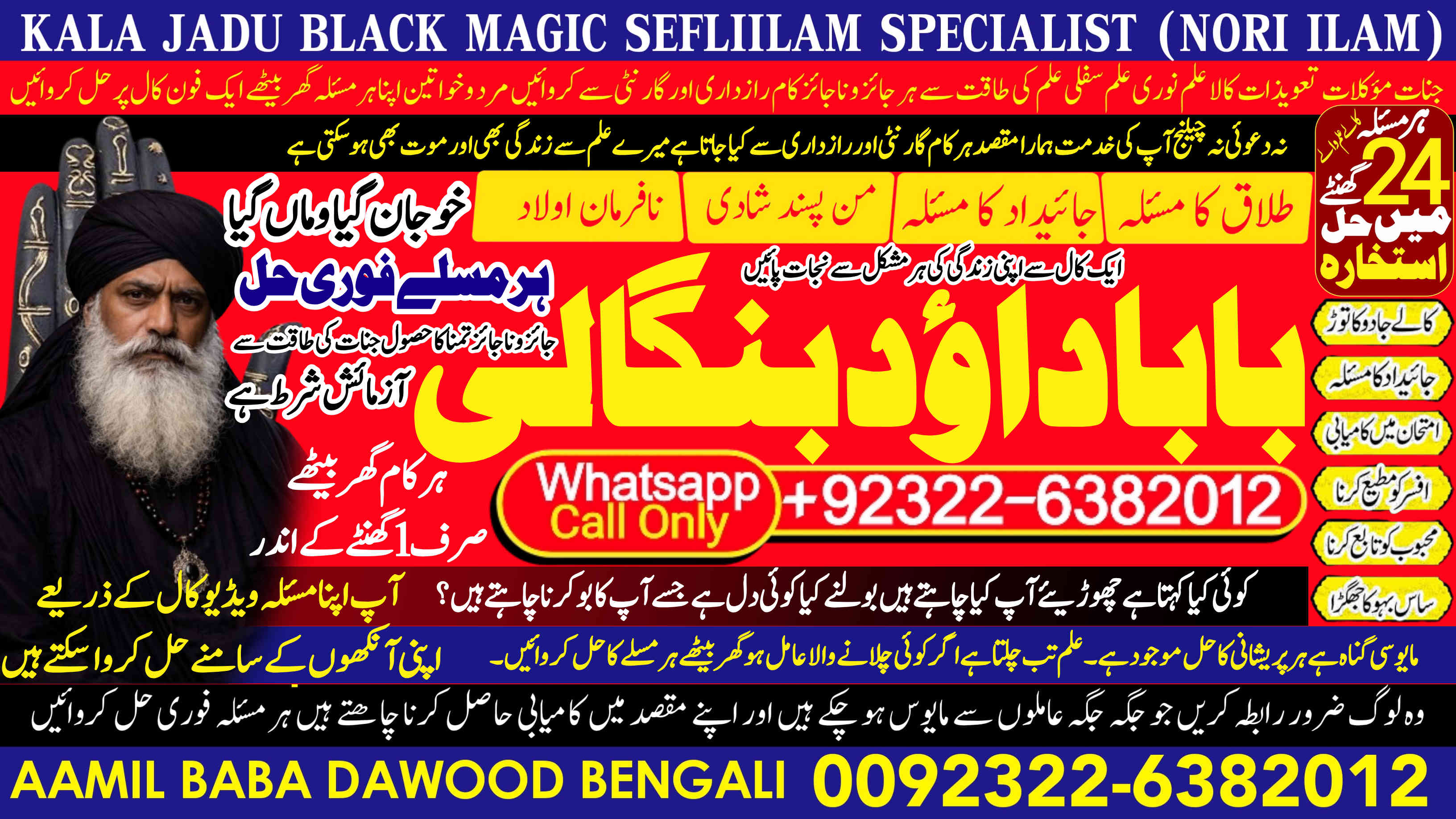 Amil Baba Dawood Bangali Contact on whatsapp +92322-6382012 is a renowned spiritual healer and master of ancient occult sciences, specializing in Black Magic, Sephi Ilam, Nori Ilam, and Voodoo Spells. With decades of experience in the mystical arts, he has gained a reputation as a powerful and trusted guide for those seeking solutions to life's most challenging problems.