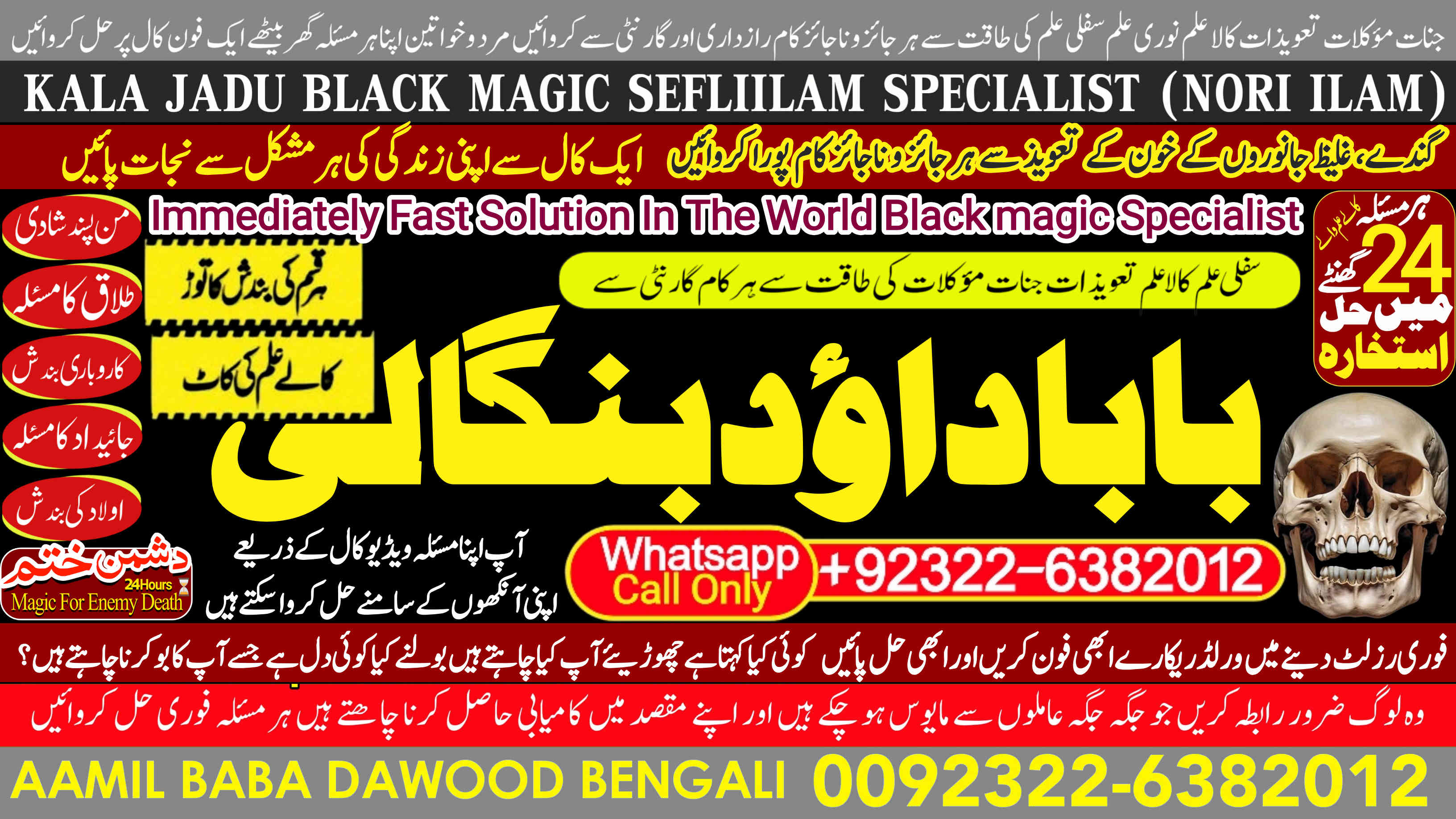 Whether it's love and relationship issues, business success, enemy protection, enemy dead or supernatural disturbances, Amil Baba Dawood Bangali provides authentic and effective remedies rooted in deep spiritual knowledge. His expertise in Kala Jadu (Black Magic), Sephi Ilam (sacred scriptures), Nori Ilam (divine light magic), and Voodoo rituals has helped countl