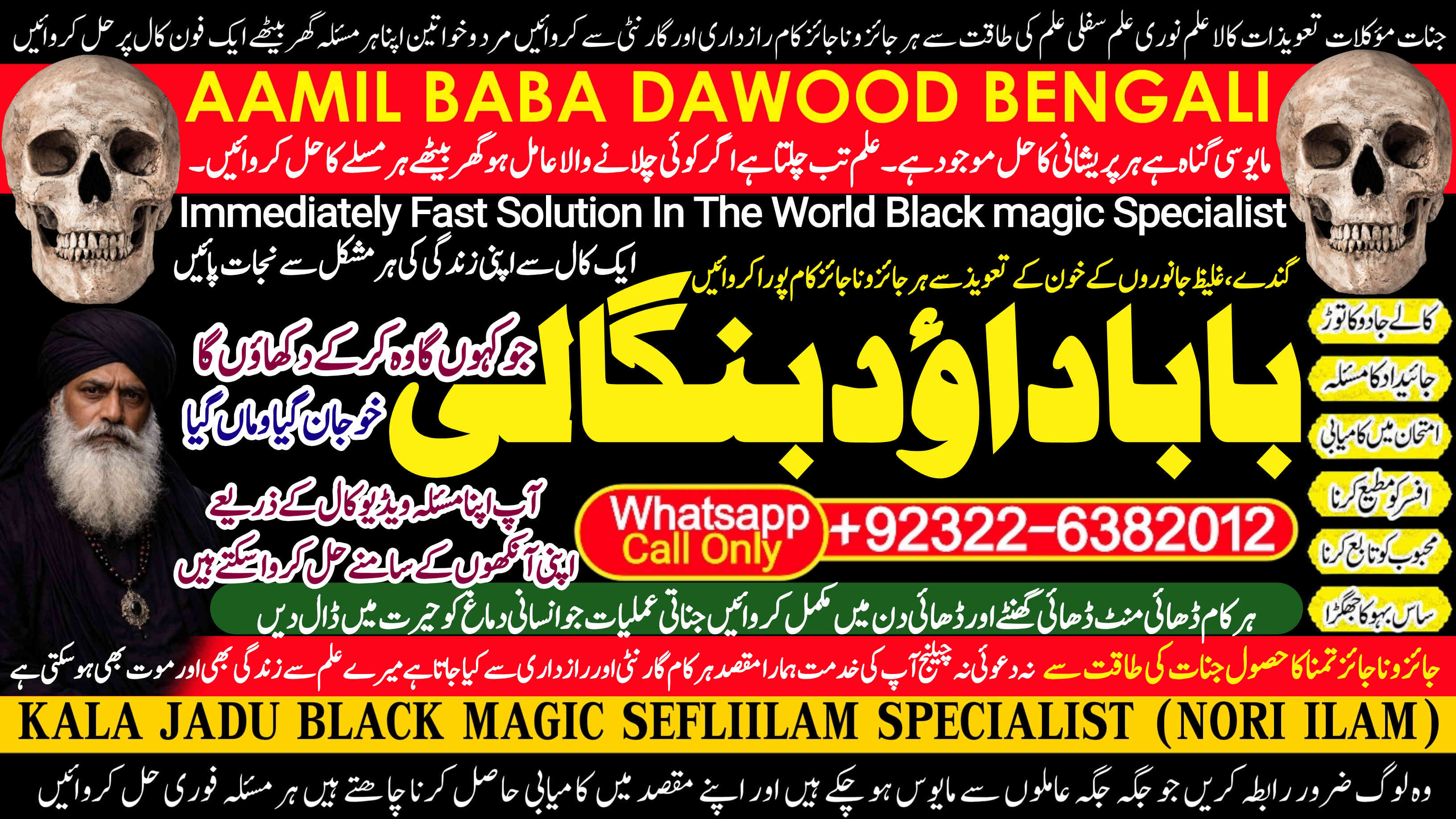 Whether it's love and relationship issues, business success, enemy protection, enemy dead or supernatural disturbances, Amil Baba Dawood Bangali provides authentic and effective remedies rooted in deep spiritual knowledge. His expertise in Kala Jadu (Black Magic), Sephi Ilam (sacred scriptures), Nori Ilam (divine light magic), and Voodoo rituals has helped countl