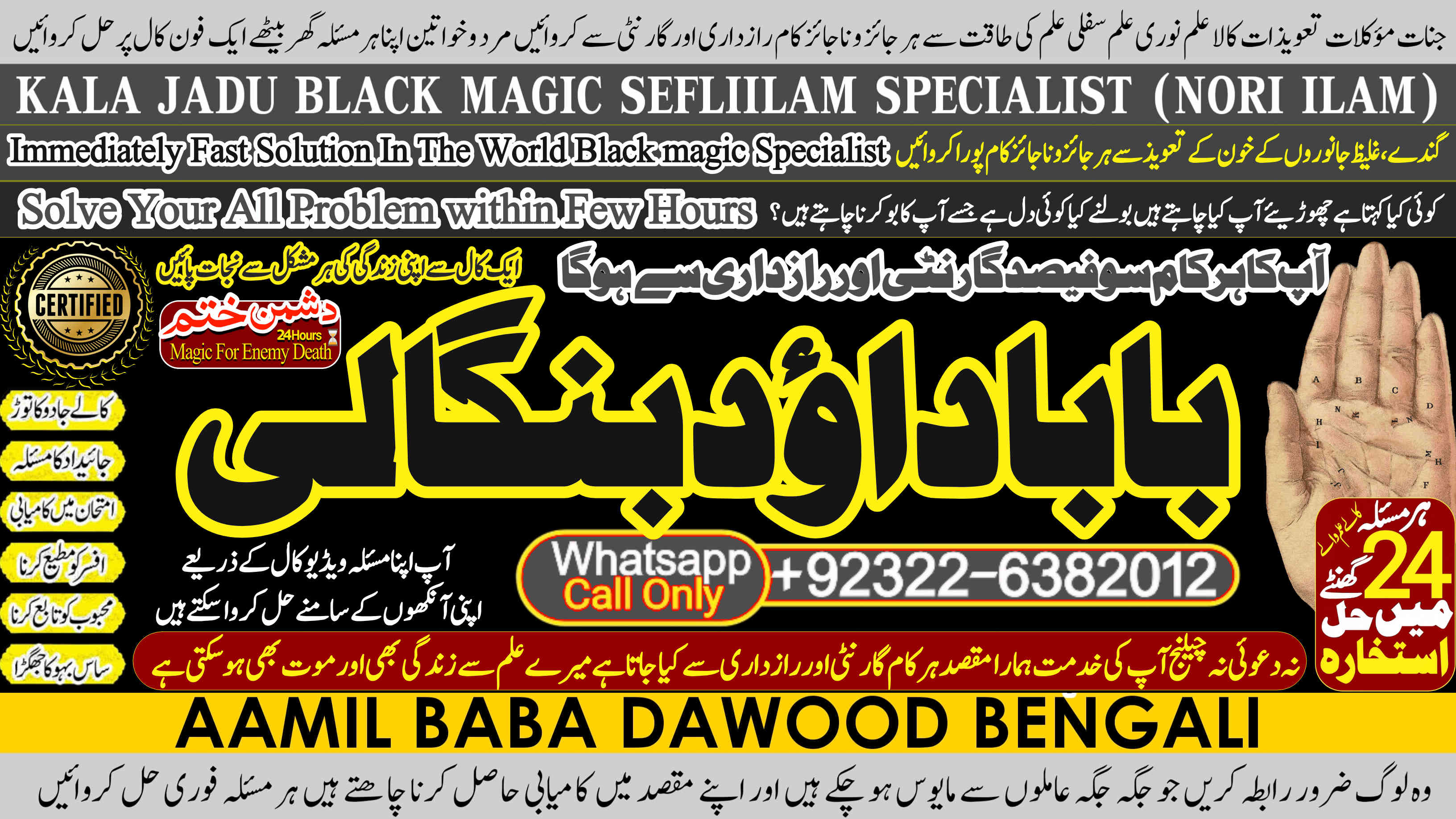 Whether it's love and relationship issues, business success, enemy protection, enemy dead or supernatural disturbances, Amil Baba Dawood Bangali provides authentic and effective remedies rooted in deep spiritual knowledge. His expertise in Kala Jadu (Black Magic), Sephi Ilam (sacred scriptures), Nori Ilam (divine light magic), and Voodoo rituals has helped countl
