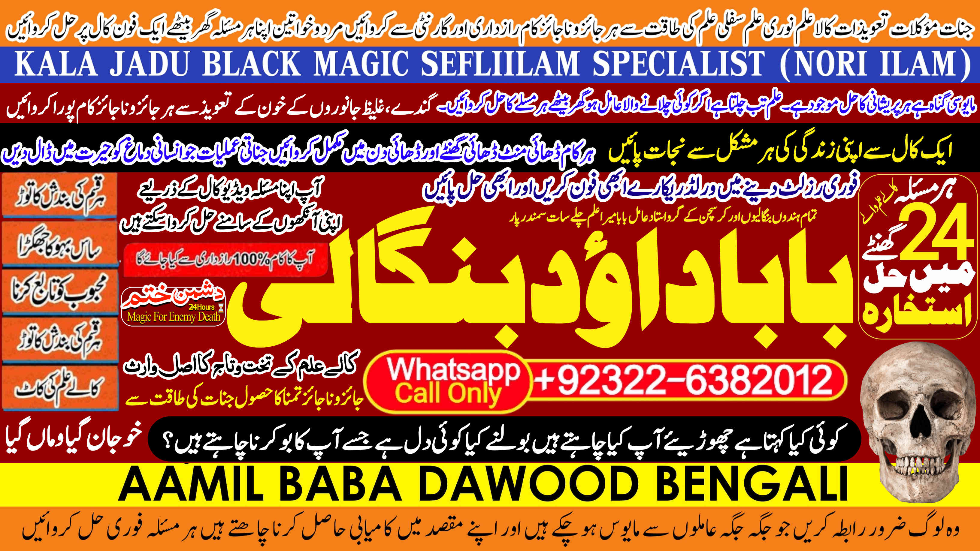 Whether it's love and relationship issues, business success, enemy protection, enemy dead or supernatural disturbances, Amil Baba Dawood Bangali provides authentic and effective remedies rooted in deep spiritual knowledge. His expertise in Kala Jadu (Black Magic), Sephi Ilam (sacred scriptures), Nori Ilam (divine light magic), and Voodoo rituals has helped countl