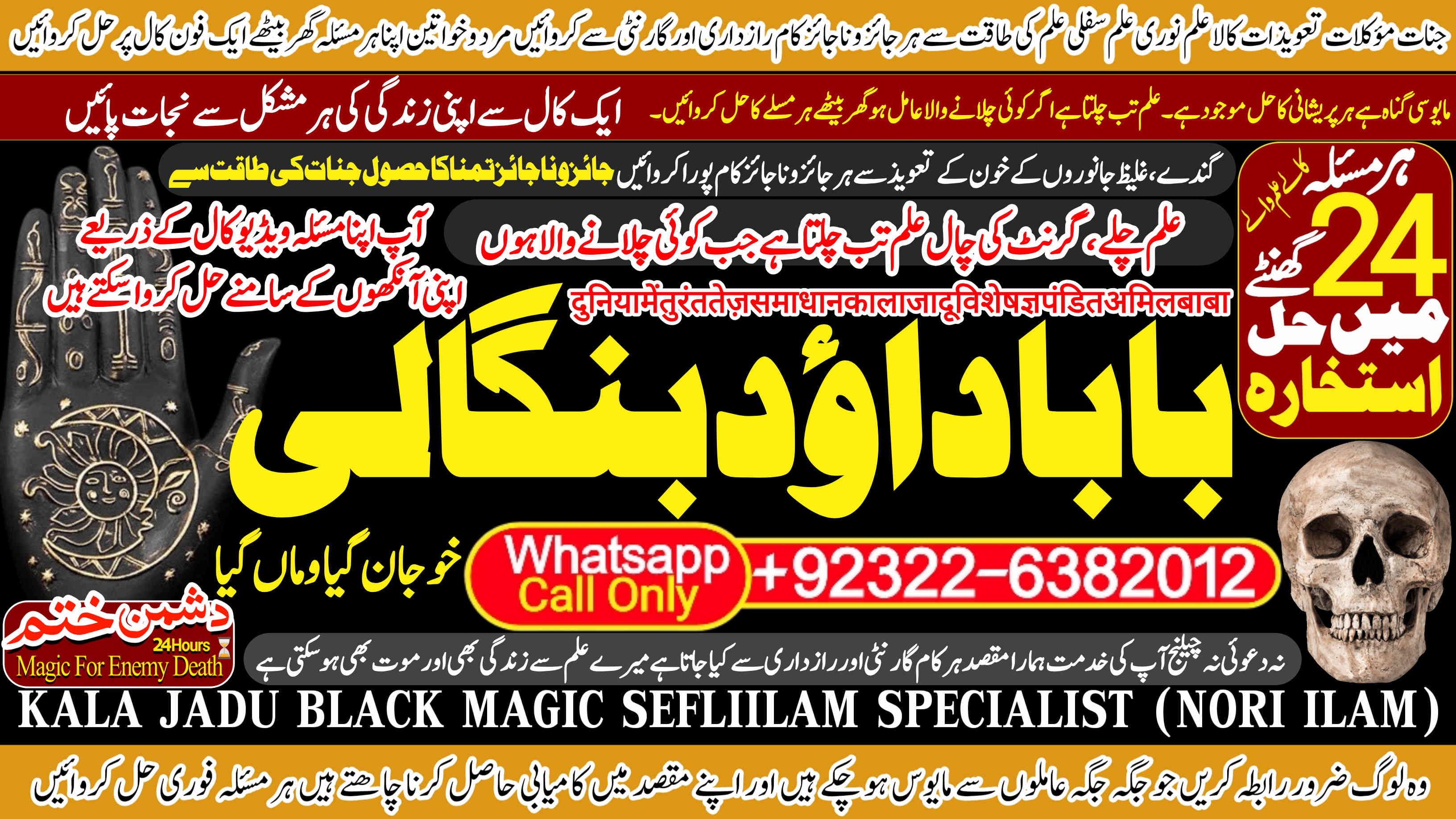 Whether it's love and relationship issues, business success, enemy protection, enemy dead or supernatural disturbances, Amil Baba Dawood Bangali provides authentic and effective remedies rooted in deep spiritual knowledge. His expertise in Kala Jadu (Black Magic), Sephi Ilam (sacred scriptures), Nori Ilam (divine light magic), and Voodoo rituals has helped countl