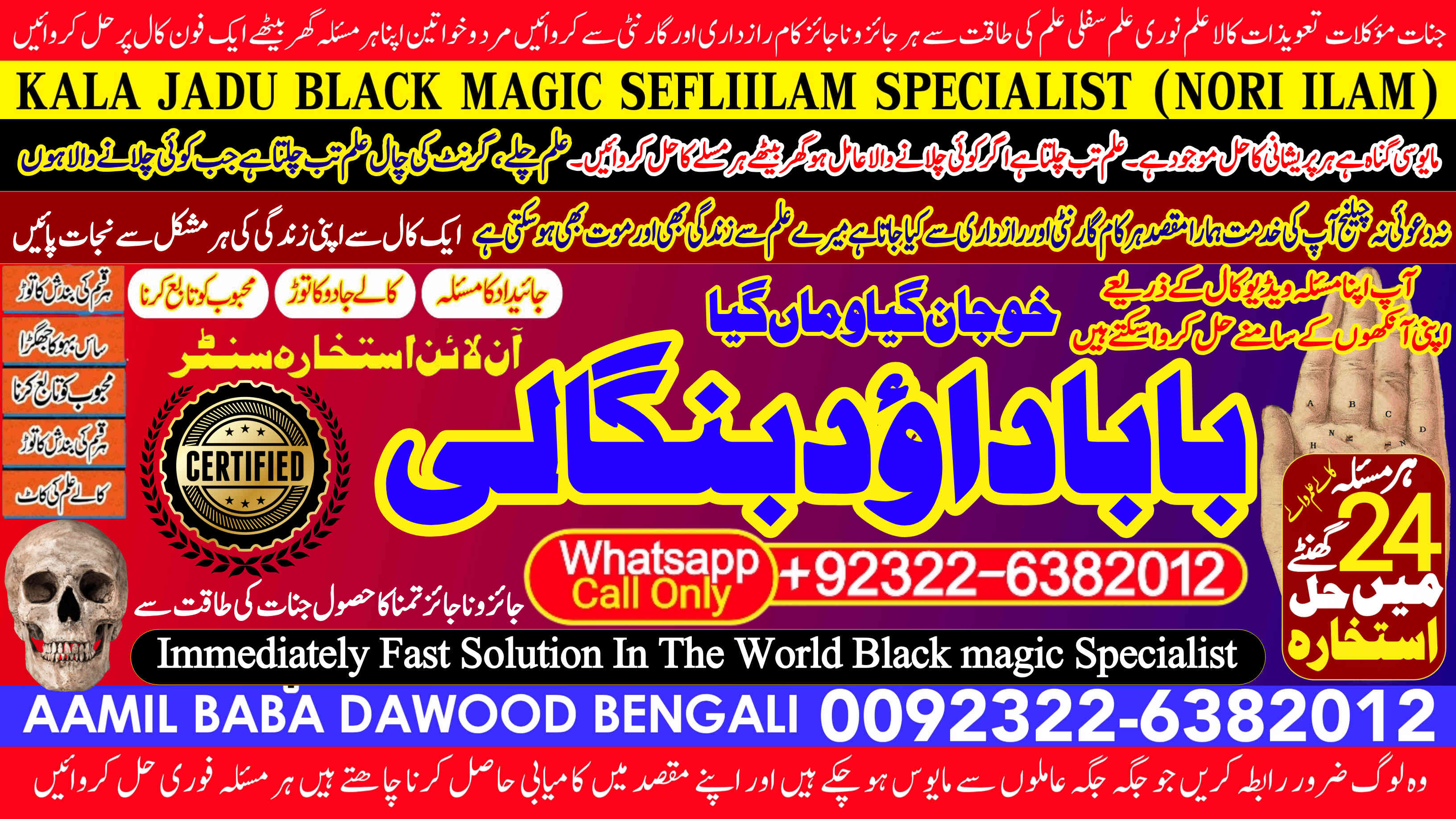 Amil Baba Dawood Bangali Contact on whatsapp +92322-6382012 is a renowned spiritual healer and master of ancient occult sciences, specializing in Black Magic, Sephi Ilam, Nori Ilam, and Voodoo Spells. With decades of experience in the mystical arts, he has gained a reputation as a powerful and trusted guide for those seeking solutions to life's most challenging problems.
