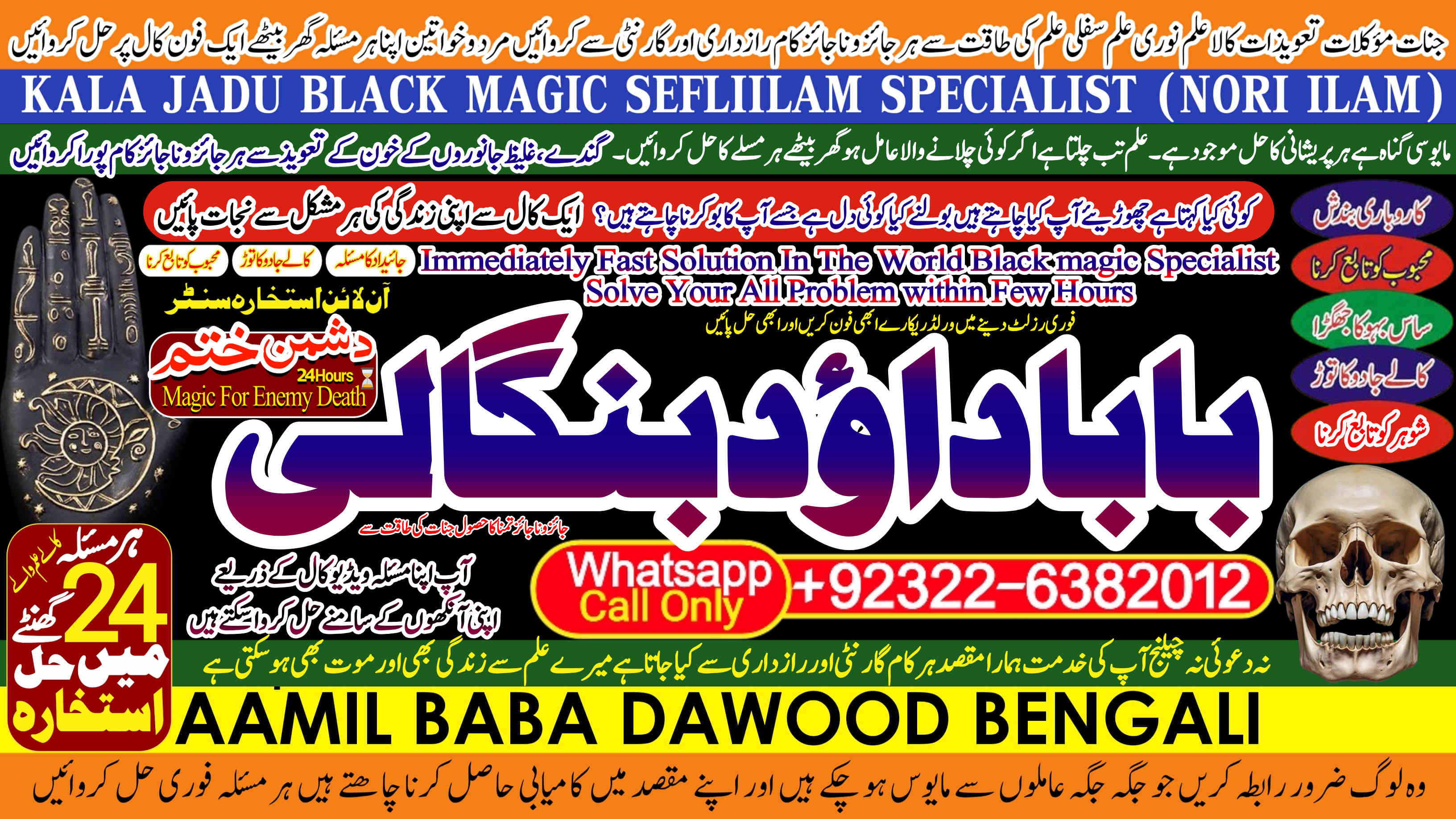 Amil Baba Dawood Bangali is a renowned spiritual healer and master of ancient mystical sciences, offering authentic solutions worldwide. With decades of experience, he specializes in Black Magic (Kala Jadu), Sephi Ilam, Nori Ilam, and Voodoo Spells, helping people overcome love problems, marriage issues, business challenges, enemy attacks, and spiritual disturbances.