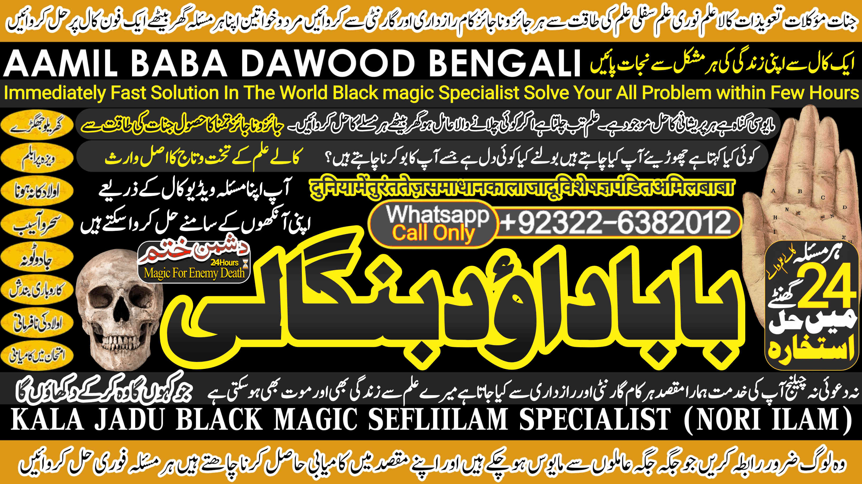 Amil Baba Dawood Bangali is a renowned spiritual healer and master of ancient mystical sciences, offering authentic solutions worldwide. With decades of experience, he specializes in Black Magic (Kala Jadu), Sephi Ilam, Nori Ilam, and Voodoo Spells, helping people overcome love problems, marriage issues, business challenges, enemy attacks, and spiritual disturbances.